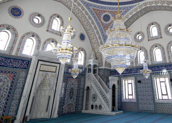 Klasik Tarz: Geleneksel Osmanlı ve Selçuklu mimarisi çizgileriyle tasarlanmış minber ve mihraplar.